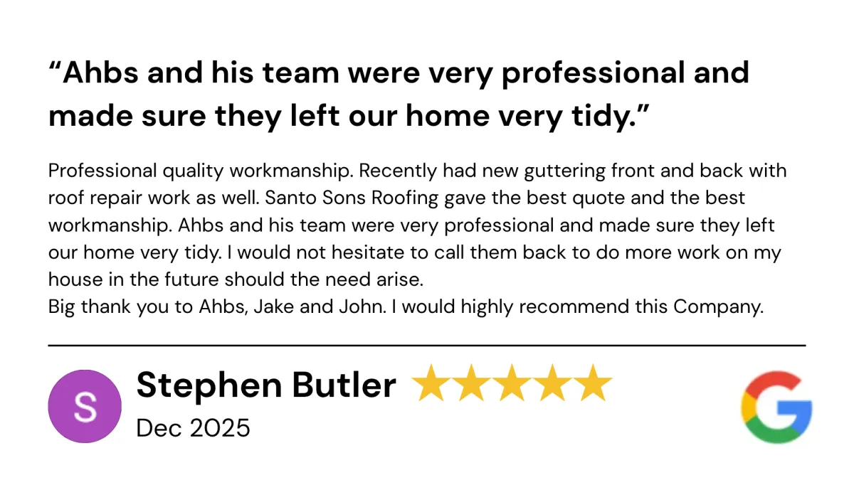 "Hi I'm Ahbs and I've been roofing in Essex and the surrounding areas for over 20 years. I started this family business with one goal - to give homeowners a straight, honest service without the hard sell or hidden costs.